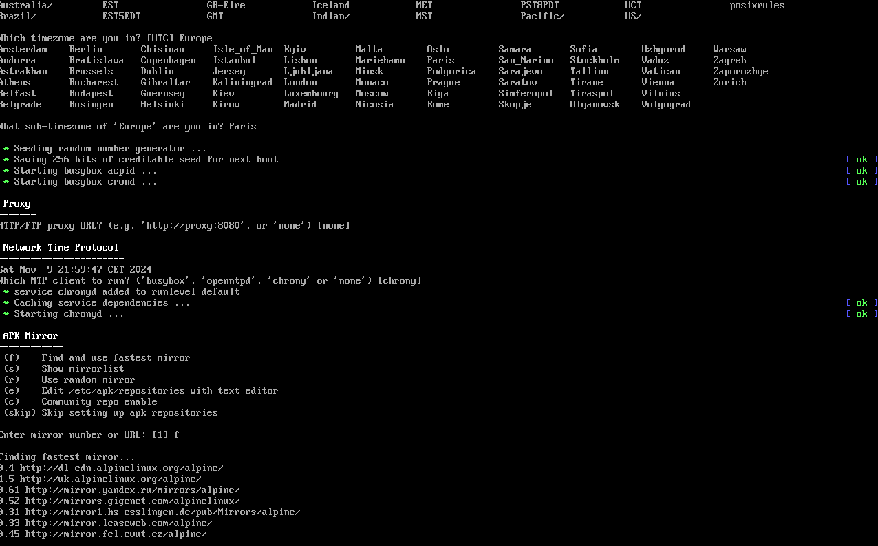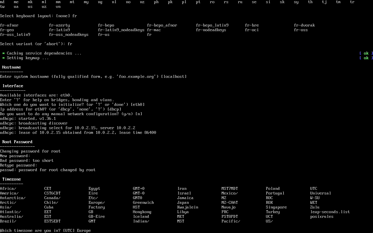 setup-alpine, puis entrée.
