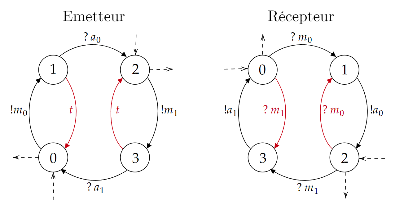 Nous représentons l'émetteur ainsi que le récepteur à l'aide d'un automate.